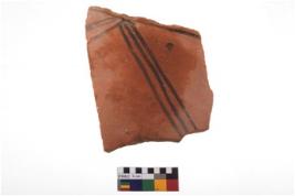 | Description / विवरण | Specimen of potsherd with black decorative geometric painting. |