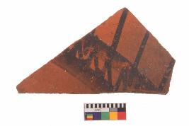 | Description / विवरण | Specimen of potsherd with black decorative geometric painting, Type Black on Red Ware . |