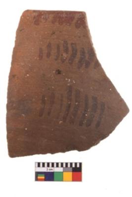 | Description / विवरण | Specimen of potsherd with decorative geometric painting. Type Red on Red Ware . |
