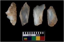 | Description / विवरण | There are n 4 of utilized worked cores. They show multidirectional irregular dominant scar pattern and are tapering on one end and have sharp edges. |