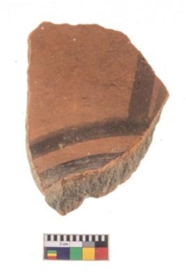 | Description / विवरण | Specimen of potsherd with black decorative geometric painting. |