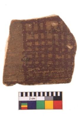 | Description / विवरण | Specimen of potsherd with decorative geometric painting. Type Black on Red Ware . |