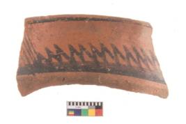 | Description / विवरण | Specimen of potsherd with black decorative geometric painting. |