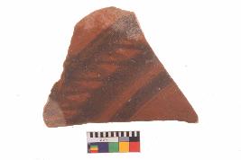 | Description / विवरण | Specimen of potsherd with black decorative geometric Set of two zigzag bands painting, Type Black on Red Ware . |