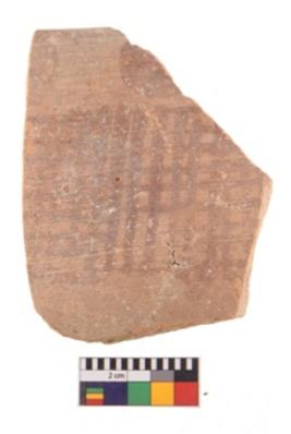 | Description / विवरण | Specimen of potsherd with decorative geometric painting. Type Black on Red Ware . |