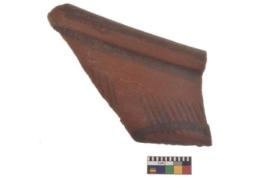 | Description / विवरण | Specimen of black on red ware with decorative geometric oblique strokes painting. |