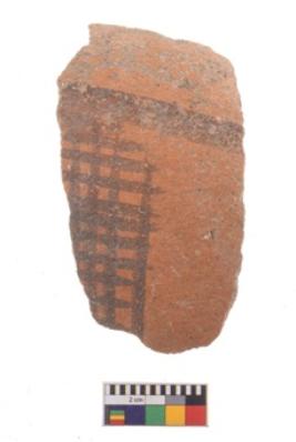 | Description / विवरण | Specimen of potsherd with black decorative geometric painting . |