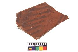 | Description / विवरण | Specimen of potsherd with black decorative geometric Linear painting, Type Black on Red Ware . |
