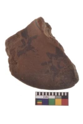 | Description / विवरण | Specimen of black on red ware with decorative geometric star motif painting. |