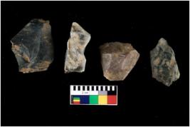 | Description / विवरण | There are n 4 of utilized worked cores. They show multidirectional irregular dominant scar pattern. Two are tapering at one end. All are having sharp edges. |