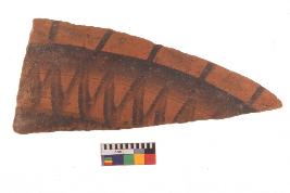 | Description / विवरण | Specimen of potsherd with black decorative zigzag painting, Type Black on Red Ware . |