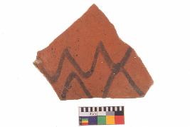 | Description / विवरण | Specimen of potsherd with black decorative painting, Type Black on Red Ware . |