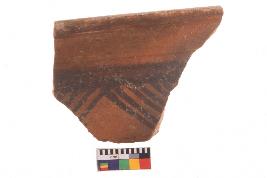 | Description / विवरण | Specimen of potsherd with black decorative geometric Linear painting, Type Black on Red Ware . |