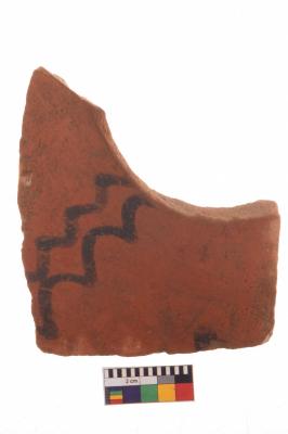 | Description / विवरण | Specimen of potsherd with black decorative painting, Type Black on Red Ware . |