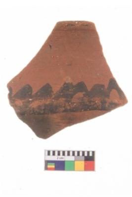 | Description / विवरण | Specimen of potsherd with black decorative geometric painting. |