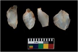 | Description / विवरण | There are n 4 of utilized worked cores. They show multidirectional irregular dominant scar pattern. Three of them are tapering on one end. |