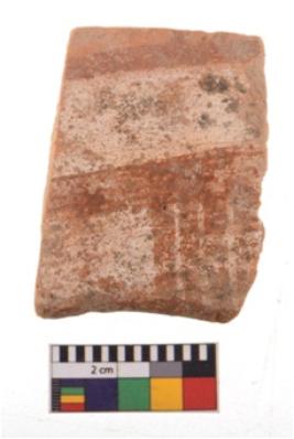 | Description / विवरण | Specimen of potsherd with decorative geometric painting. Type Black on Red Ware . |