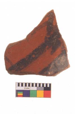 | Description / विवरण | Specimen of potsherd with black decorative painting, Type Black on Red Ware . |