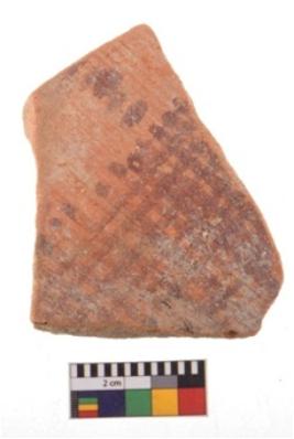 | Description / विवरण | Specimen of potsherd with decorative geometric painting. Type Black on Red Ware . |