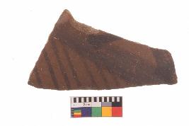 | Description / विवरण | Specimen of potsherd with black decorative geometric Linear painting, Type Black on Red Ware . |
