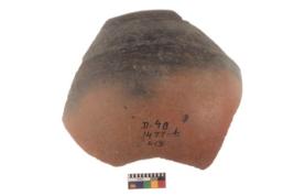 | Description / विवरण | Specimen of black on red ware with black decorative Joint triangles geometric painting. |