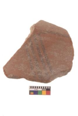 | Description / विवरण | Specimen of black on red ware with black decorative Parallel lines geometric painting. |