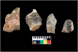 | Description / विवरण | There are n 4 of utilized worked cores. They show multidirectional irregular dominant scar pattern. Three are tapering at one end. All are having sharp edges. |