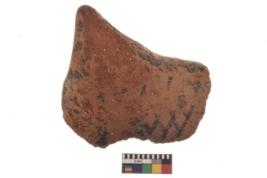 | Description / विवरण | Specimen of black on red ware with traces of decorative geometric A groups lines pattern traingles and diamonds painting. |