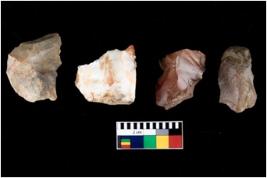 | Description / विवरण | There are n 4 of utilized worked cores. They show multidirectional irregular dominant scar pattern. Three have broken tip. All are having sharp edges. |