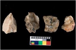 | Description / विवरण | There are n 4 of utilized worked cores. They show multidirectional irregular dominant scar pattern. One is tapering at one end. All are having sharp edges. |