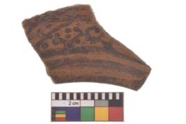 | Description / विवरण | Specimen of black on red ware with decorative geometric Slanting diamonds and triangles with dots painting. |