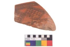 | Description / विवरण | Specimen of potsherd with black decorative geometric painting. |