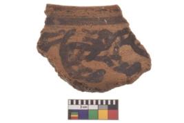 | Description / विवरण | Specimen of black on red ware with decorative geometric irregularly drawn antelope motif painting. |