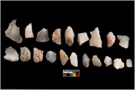 | Description / विवरण | There are n 20 worked flakes; all are having sharp edges. Sone are tapering at one end whereas some have flat base.All are uneven in shape and size. None of them show crested ridge flakes. |