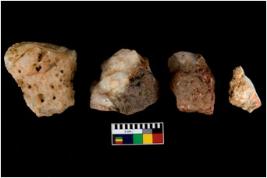 | Description / विवरण | There are n 4 of utilized worked cores. They show multidirectional irregular scar pattern. Three have flat base. All are having blunt edges. |