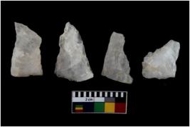 | Description / विवरण | There are n 4 flake cores. All of them are fully fluted flake cores without any trace of crested ridge flakes. Few are tapering at one end. Some of them have flat base whereas few have sharp edges. |