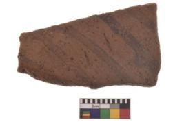 | Description / विवरण | Specimen of black on red ware with traces of decorative geometric parallel lines painting. |