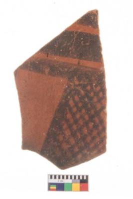 | Description / विवरण | Specimen of potsherd with black decorative geometric painting. |