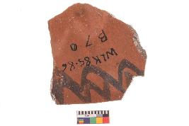 | Description / विवरण | Specimen of potsherd with black decorative painting, Type Black on Red Ware . |