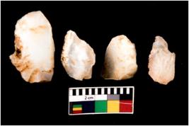 | Description / विवरण | There are n 4 of utilized worked cores. They show multidirectional irregular scar pattern. Three have round base. |