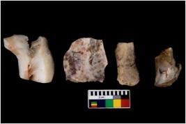 | Description / विवरण | There are n 4 of utilized worked cores. They show multidirectional irregular dominant scar pattern. Two have broken tip. |