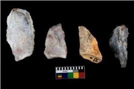 | Description / विवरण | There are n 4 of utilized worked cores. They show multidirectional irregular dominant scar pattern. They are tapering at one end and have flat base. |