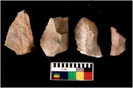 | Description / विवरण | There are n 4 of utilized worked cores. They show multidirectional irregular scar pattern and are tapering on one end. |