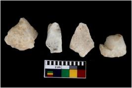 | Description / विवरण | There are n 4 flake cores. All of them are fully fluted flake cores without any trace of crested ridge flakes. Few are tapering at one end and some of them have blunted edges. |