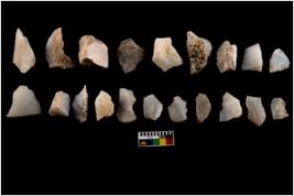 | Description / विवरण | There are n 20 worked flakes; all are having sharp edges. Sone are tapering at one end whereas some have flat base.All are uneven in shape and size. None of them show crested ridge flakes. |