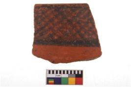 | Description / विवरण | Specimen of potsherd with decorative geometric painting. Type Black on Red Ware . |