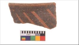 | Description / विवरण | Specimen of potsherd with decorative geometric painting, Type Black on Red ware . |