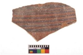 | Description / विवरण | Specimen of potsherd with decorative geometric painting. Type Black on Red Ware . |