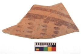 | Description / विवरण | Specimen of potsherd with decorative geometric painting. Type Black on Red Ware . |