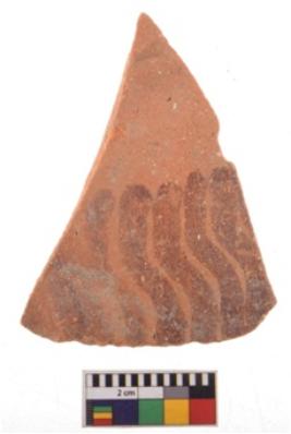 | Description / विवरण | Specimen of potsherd with decorative geometric painting. Type Black on Red Ware . |